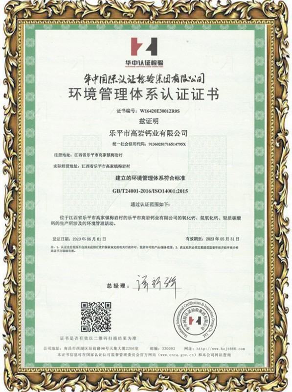 環(huán)境管理體系認(rèn)證證書